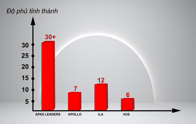Khi hầu hết các "ông lớn" tiếng Anh chỉ tập trung ở đô thị lớn, Apax Leaders đã tiên phong về quê mở ra thị trường mới cho mình và đem tiêu chuẩn học tiếng Anh 5 sao đến với những tỉnh, vùng cao biên giới, khu vực Tây Nguyên như: Lào Cai, Đăk Nông, Kon Tum, Kiên Giang…