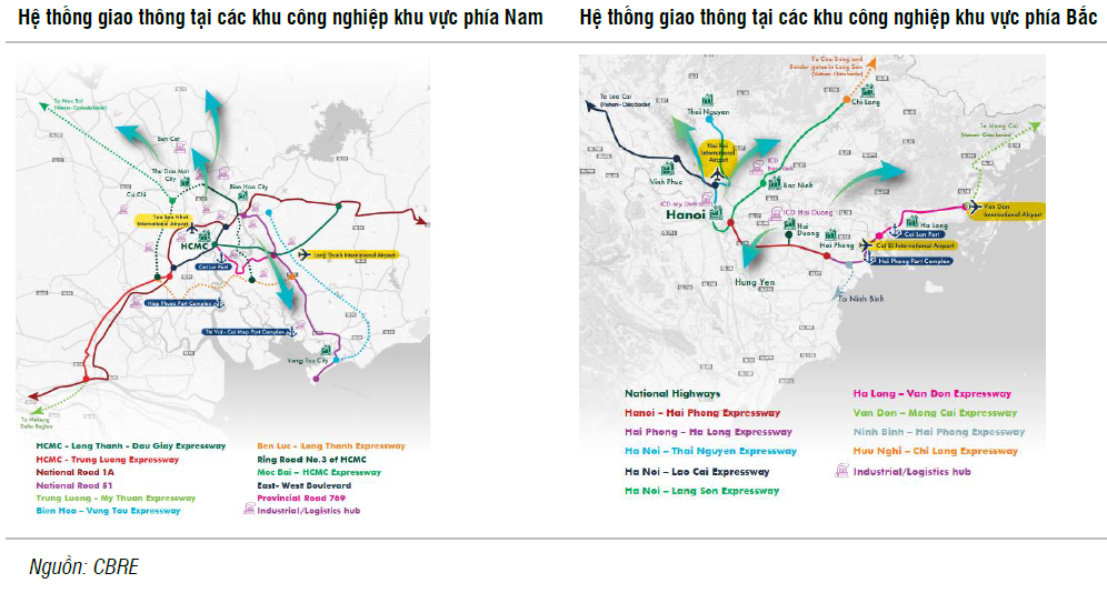 Đáng chú ý, việc cơ sở hạ tầng tiếp tục được cải thiện sẽ hỗ trợ kết nối các khu công nghiệp. Cải thiện cơ sở hạ tầng với các dự án như đường cao tốc Biên Hòa - Vũng Tàu, đường cao tốc Dầu Giây - Phan Thiết, đường cao tốc Bắc - Nam, cảng Cái Mép Thị Vải, cảng Gemalink và đường vành đai 3 & 4 sẽ tạo ra sự kết nối thuận tiện hơn giữa các khu công nghiệp.