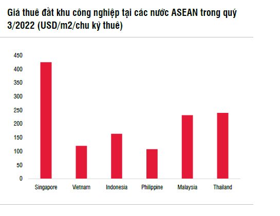 Ngoài ra, giá cho thuê đất khu công nghiệp tại Việt Nam vẫn ở mức thấp so với các nước ASEAN, cụ thể thấp hơn 30~36% so với Indonesia và Thái Lan.