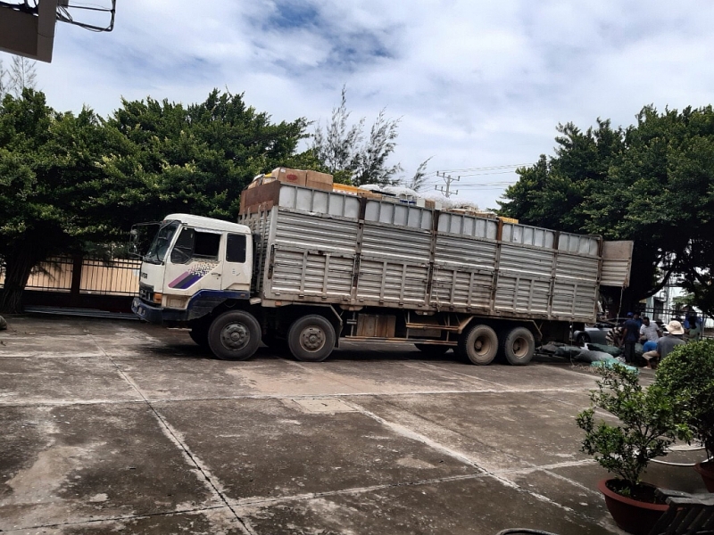 Hàng hoá trên xe tải được đưa xuống để kiểm đếm |