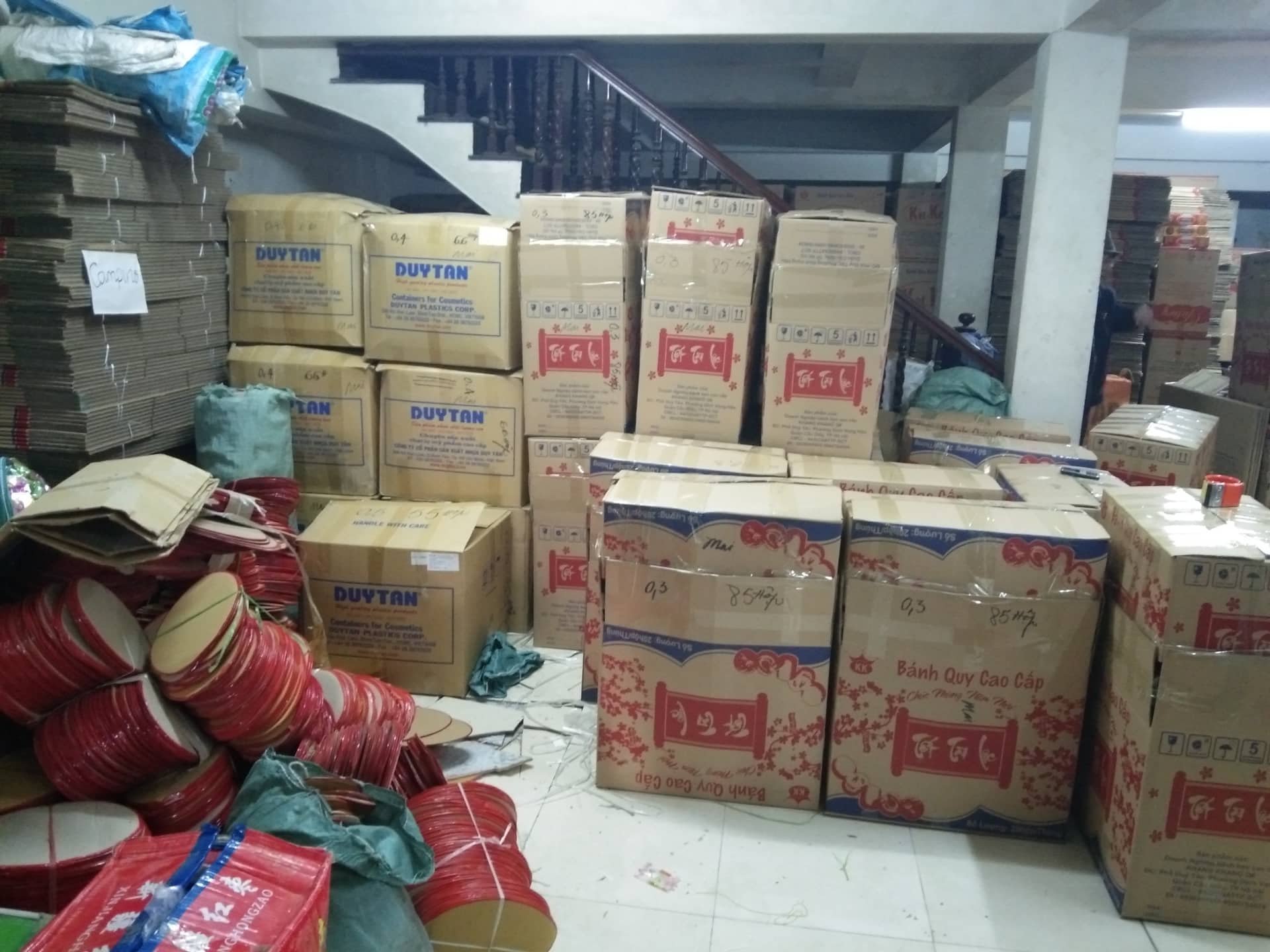 Đội Quản lý thị trường số 24, Cục Quản lý thị trường Hà Nội vừa tiến hành kiểm tra đột xuất hai cơ sở sản xuất bánh, mứt tại KCN La Phù (La Phù, Hoài Đức, Hà Nội) và thu giữ 1140 hộp bánh quy thành phẩm, 1020 hộp mứt tết , 90 kg táo khô, 27 kg bánh nguyên liệu, 400 vỏ hộp và 100 khay nhựa.