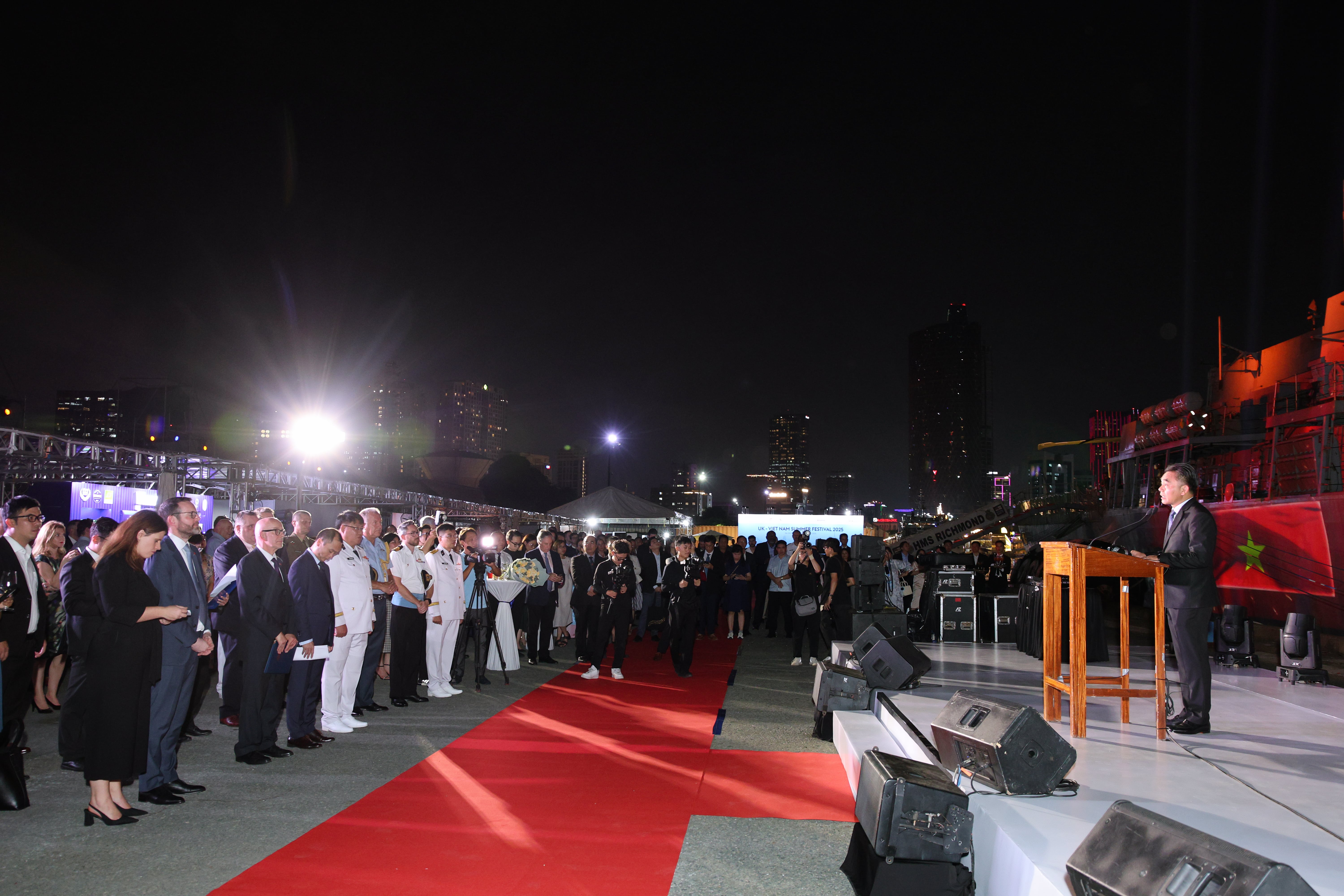 Nhân dịp này, Tổng Lãnh sự quán Anh tại TP.HCM đã tổ chức Lễ hội mùa hè Vương quốc Anh - Việt Nam 2025 (UK - Vietnam Summer Festival) để chào đón tàu HMS Richmond cũng như mừng kỷ niệm 15 năm nâng cấp quan hệ Đối tác Chiến lược Vương quốc Anh - Việt Nam. Chương trình có sự tham dự của đại diện các đại sứ quán, các lãnh sự quán tại TP.HCM, lãnh đạo TP.HCM và người đứng đầu các doanh nghiệp Anh tại Việt Nam (Ảnh: Nguyễn Hoàng).