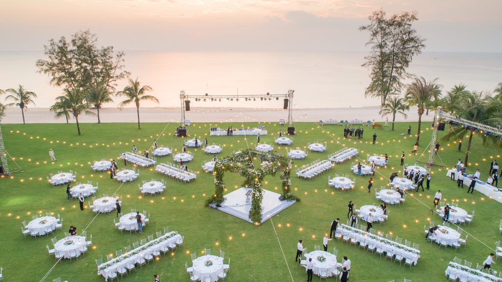 Bữa tiệc phục vụ “đám cưới của năm” của showbiz Việt được “đạo diễn” dưới bàn tay của hàng chục đầu bếp hàng đầu của Vinpearl. Tất cả các món ăn tinh tế đều được cô dâu – chú rể cùng Vinpearl lên ý tưởng và thiết đãi quan khách trong không gian sân vườn kề biển vô cùng lãng mạn và phóng khoáng.
