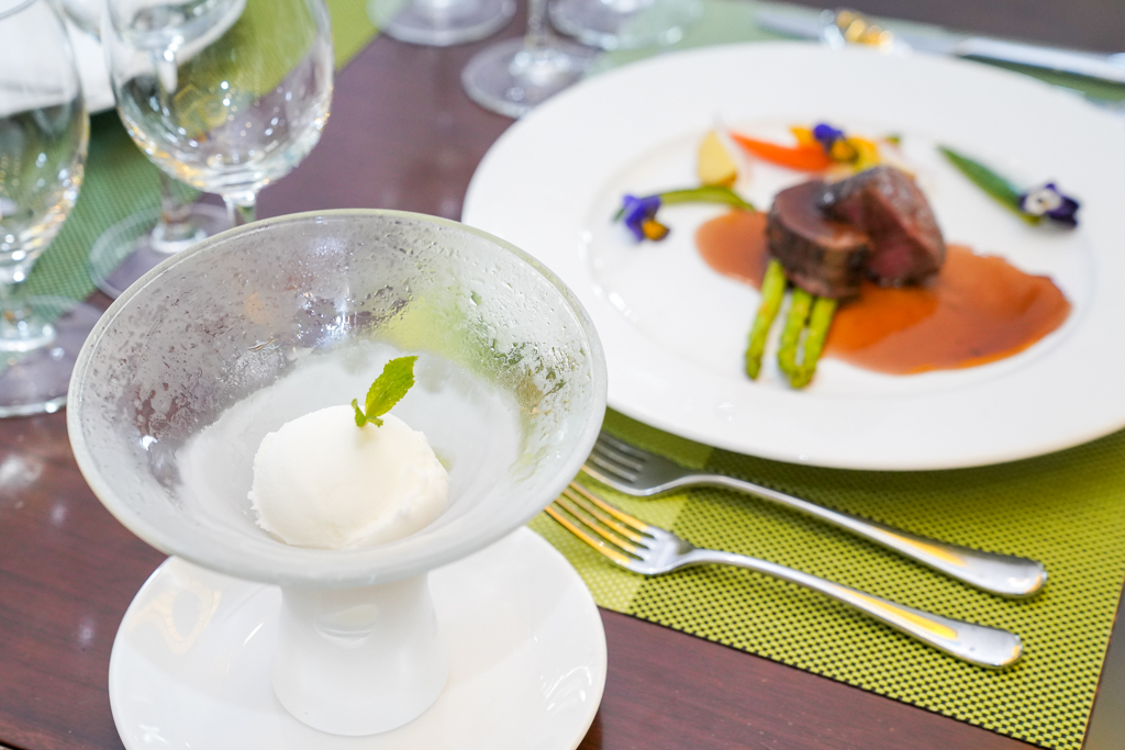 Sau những món hải sản nhiều dinh dưỡng, khách mời được "nghỉ ngơi" bằng món kem chanh thanh, mát.
