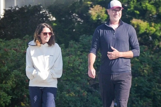 Trong khoảnh khoắc khác, họ bị bắt gặp đi dạo trên đường. Cả 2 vô cùng năng động với set đồ thể thao. Khi được hỏi về tình trạng hôn nhân, ông Byron từ chối trả lời và nhanh chóng rời đi.