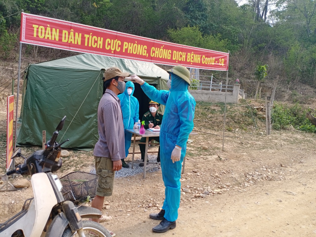 Bước vào cuộc chiến PCD Covid – 19, BĐBP Nghệ An đã lập 67 tổ chốt kiểm soát tại đường mòn, lối mở, tuần tra, kiểm soát ngăn chặn người vượt biên trái phép; Kiểm soát người, phương tiện ra vào khu vực biên giới. Các tổ chốt được lập đều cách xa khu dân cư, địa bàn hẻo lánh, địa hình hiểm trở. Nhiều tổ chốt không điện, xa nguồn nước, không có sóng điện thoại điều kiện ăn ở, sinh hoạt còn nhiều thiếu thốn…