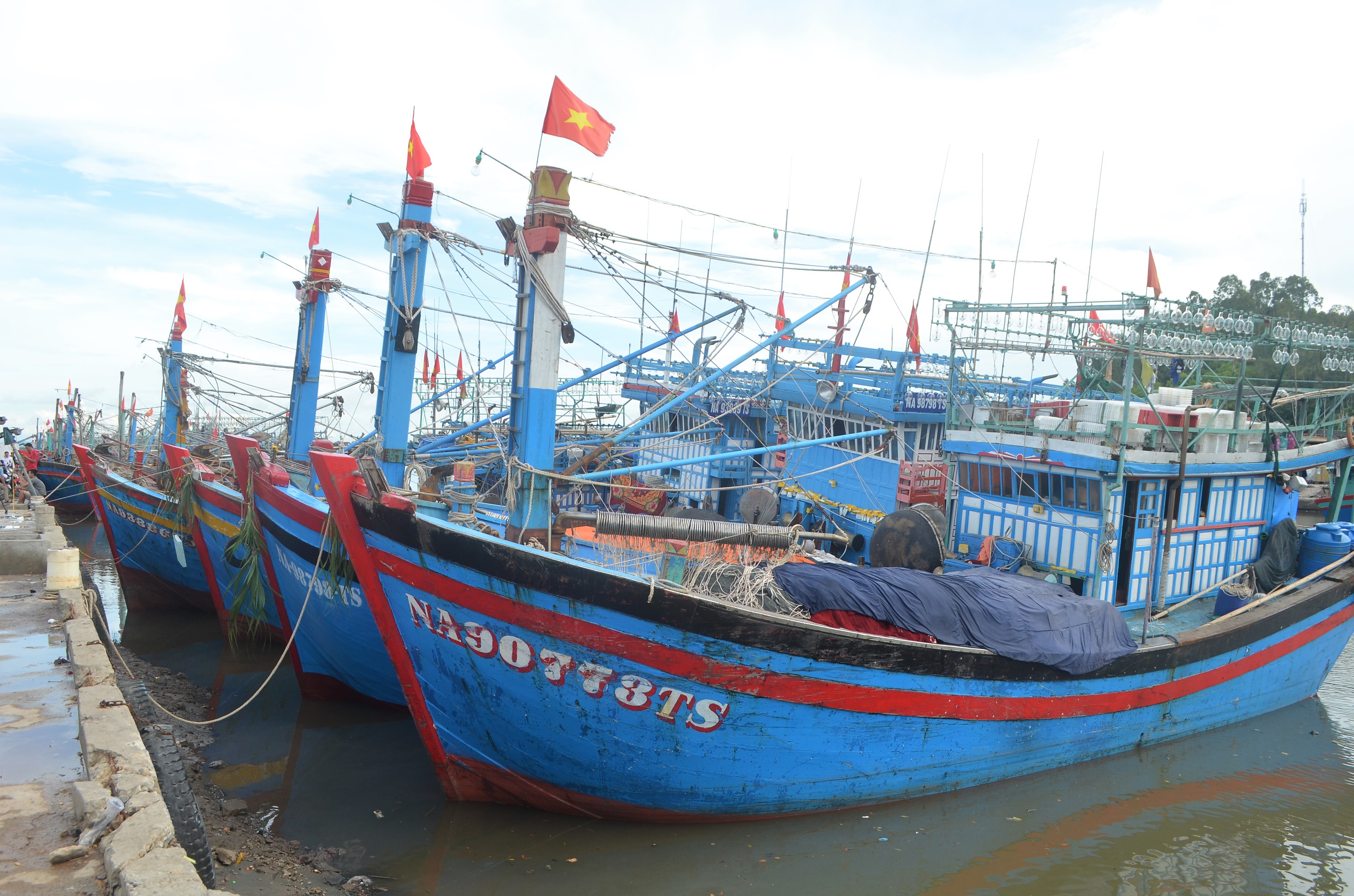 | Tàu thuyền ngư dân neo đậu tại bến cảng Lạch Quèn, huyện Quỳnh Lưu |