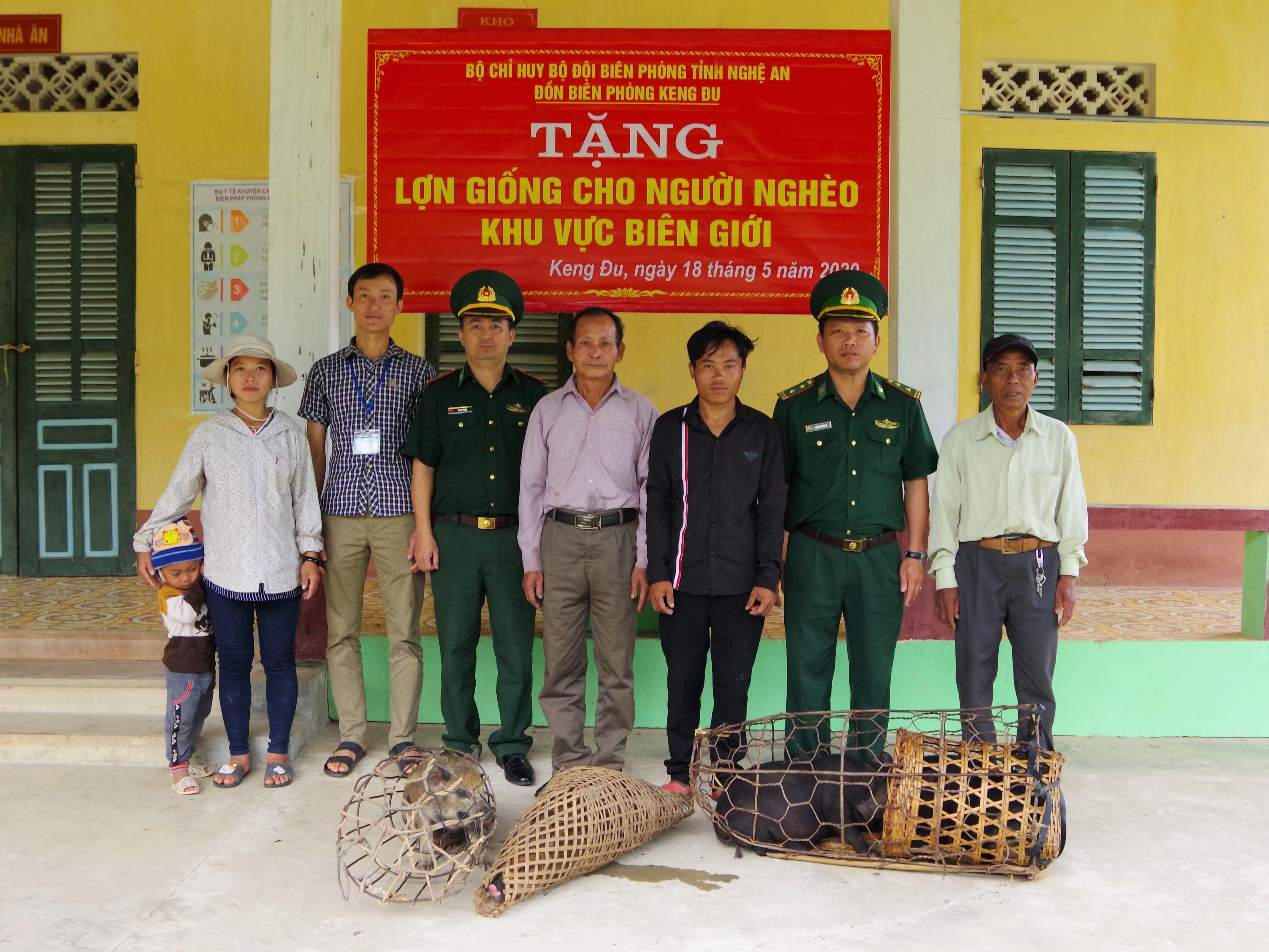 Đồn Biên phòng Keng Đu phối hợp với cấp ủy, chính quyền xã Keng Đu, huyện Kỳ Sơn tổ chức trao tặng lợn giống cho các hộ nghèo khu vực biên giới.