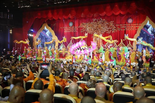 Các sư tăng, đại biểu Phật giáo quốc tế đến dự Lễ bế mạc Đại lễ Vesak Liên hợp quốc 2019.
