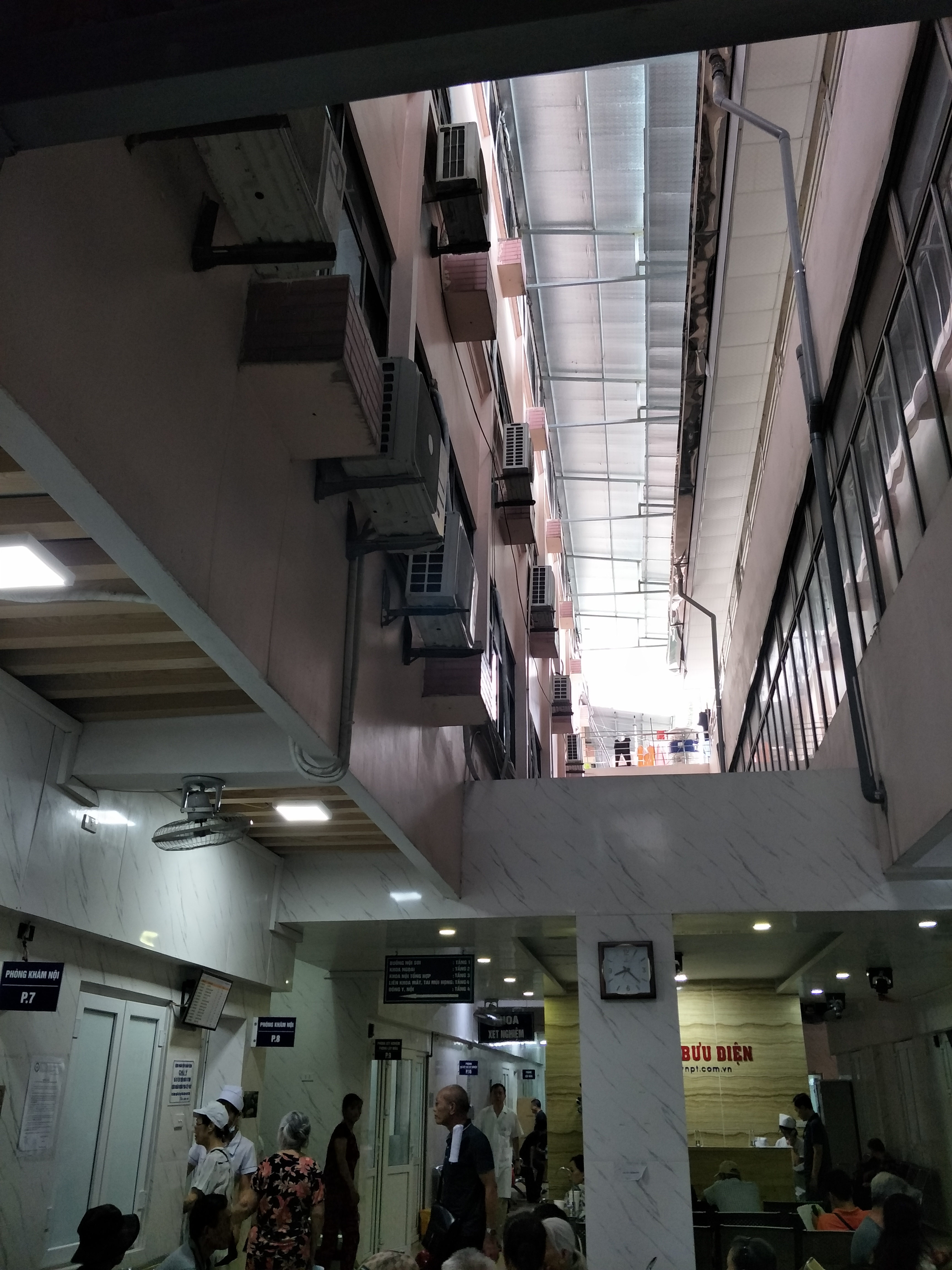 Trong không khí oi bức của mùa hè, bệnh nhân ngồi đợi khám bệnh tại các phòng nội 7, nội 8 được thưởng thức luồng khí nóng phả ra hầm hập của cả chục chiếc điều hòa. Nguy hiểm hơn, những cục nóng điều hòa treo lơ lửng trên đầu bệnh nhân giống như thần chết rình rập. Nhỡ ra… thì lại ôi thôi. Bệnh nhân sẽ là người chịu thiệt.