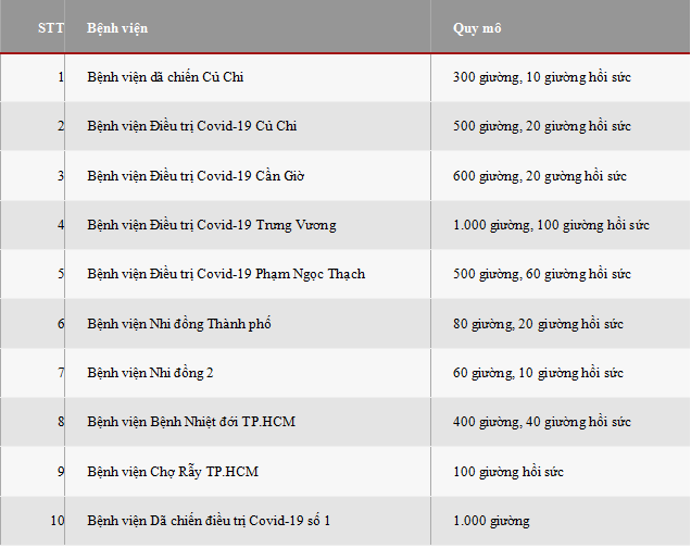 Dự kiến, TP.HCM có tổng cộng 10.000 giường điều trị Covid-19, bao gồm: