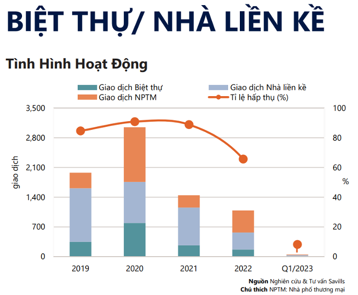 Theo thống kê của Savills, trong quý I/2023, nguồn cung mới phân khúc biệt thự, nhà liền kề tại TP HCM đạt thấp nhất ba năm chỉ với 47 căn, giảm 81% so với cùng kỳ năm ngoái. Trong khi đó, nguồn cung căn hộ giá phải chăng quay trở lại với phân khúc nhà ở TP.HCM. Các chuyên gia của Savills Việt Nam dự báo đây sẽ là phân khúc chủ lực dẫn dắt thị trường trong năm 2023.