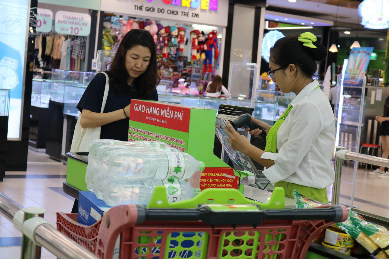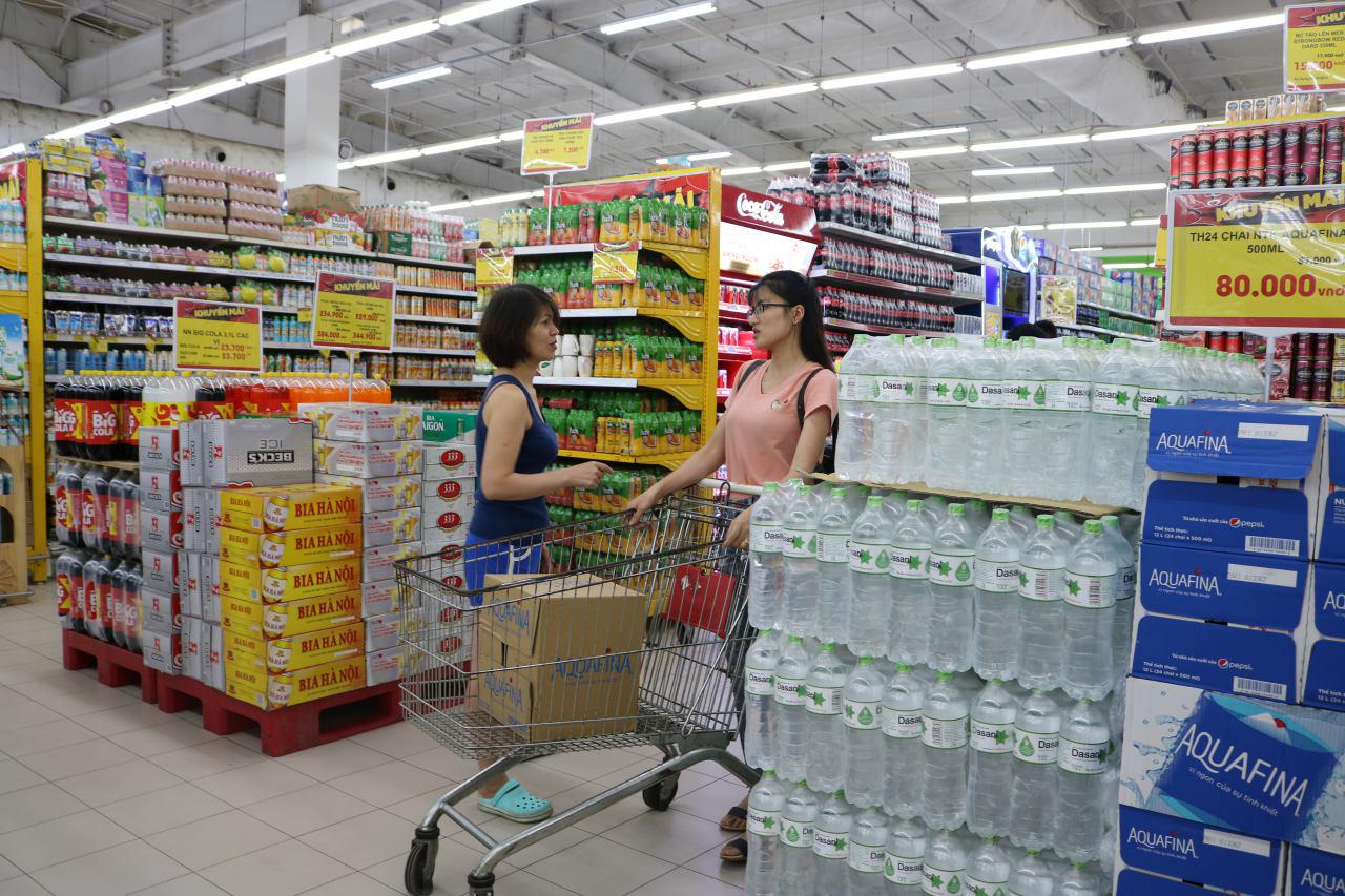 Người tiêu dùng mua nước đóng chai tại Big C Thăng Long