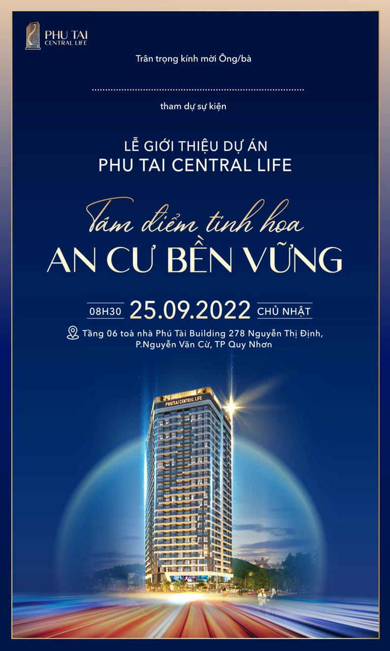Thư mời khách hàng tới dự lễ giới thiệu dự án Dự án Phú Tài Central Life tại trụ sở của chủ đầu tư