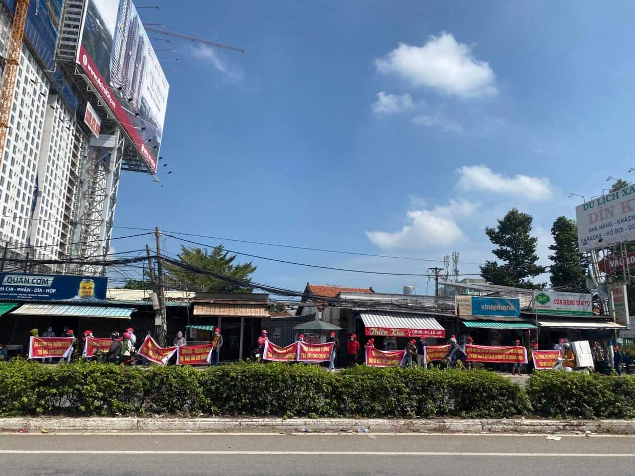 Ghi nhận của PV Thương Trường sáng ngày 30/10, hàng trăm khách hàng dự án Khu nhà ở thương mại – dịch vụ Contentment Plaza (nay có tên Roxana Plaza) tại TP.Thuận An, tỉnh Bình Dương giăng băng rôn đòi nhà.