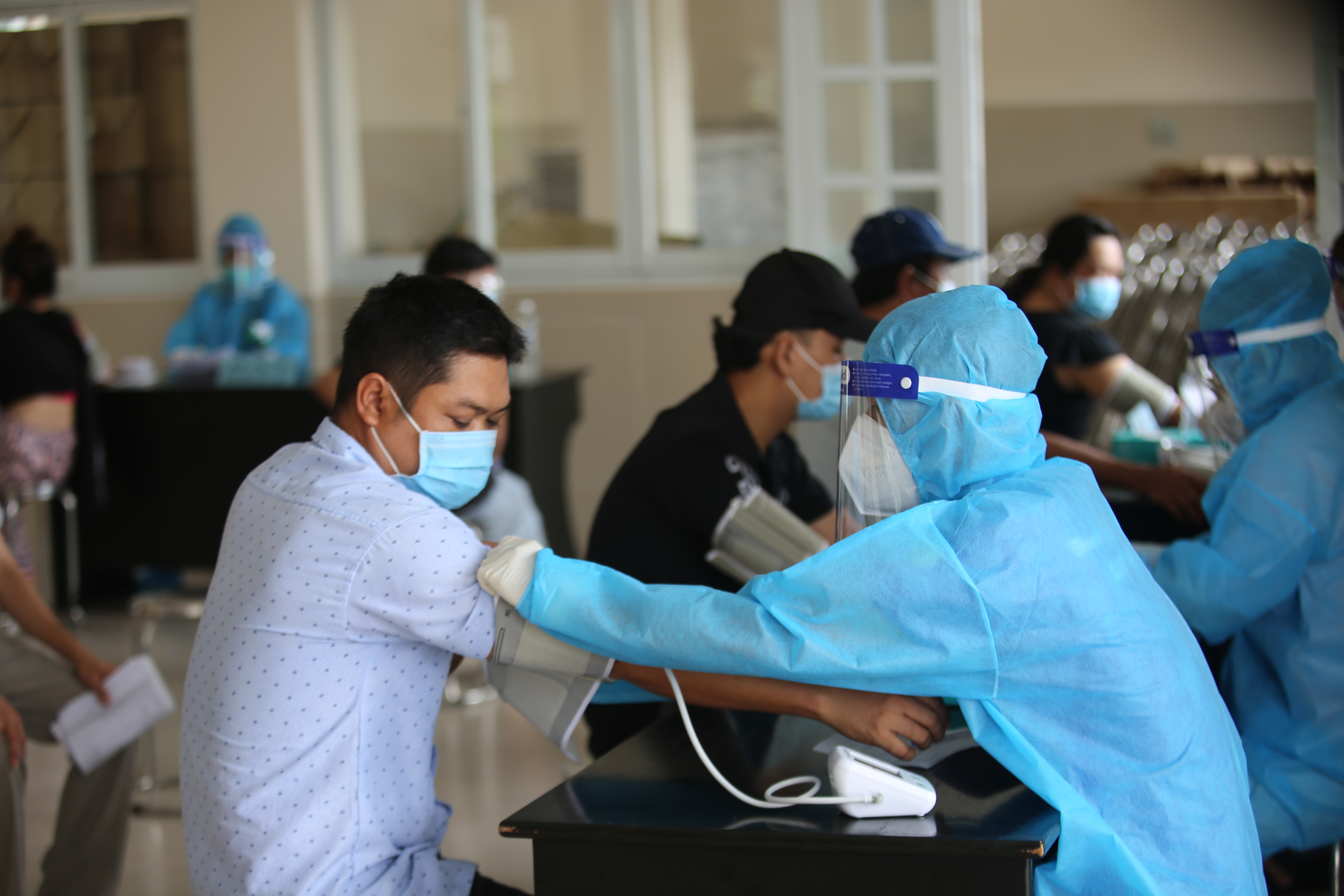 Người dân được kiểm tra sức khoẻ trước khi tiêm.