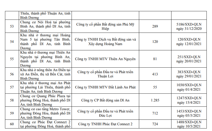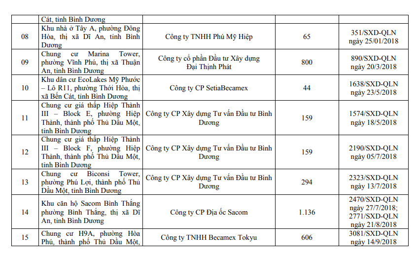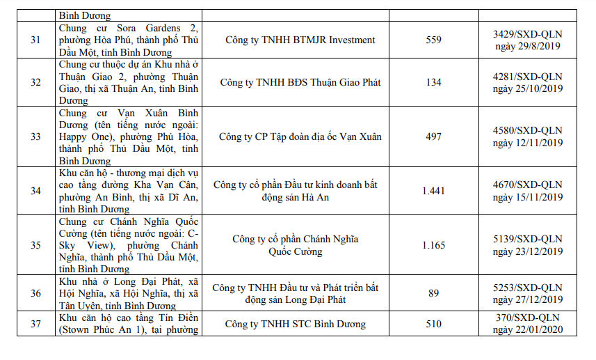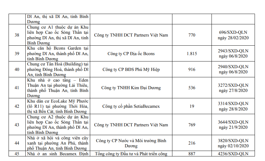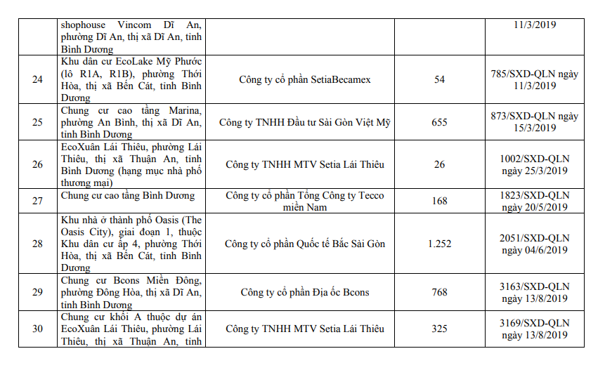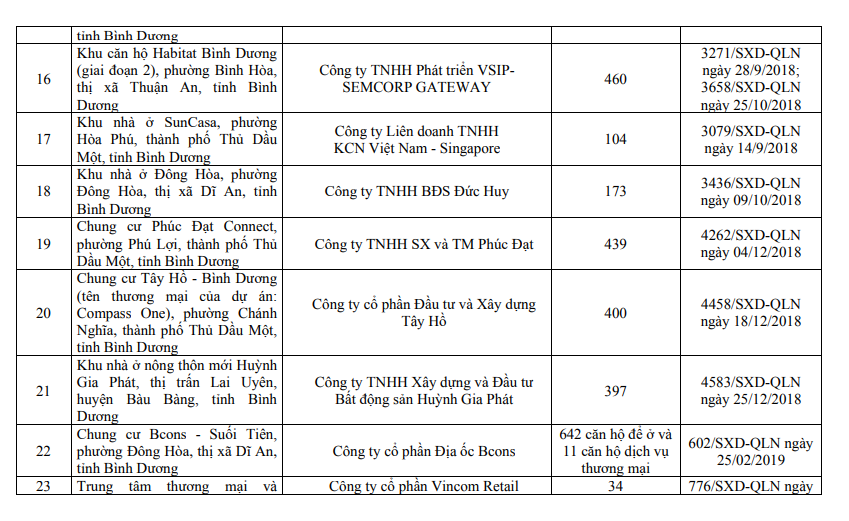 Danh sách các dự án đủ điều kiện mở bán tại Bình Dương.