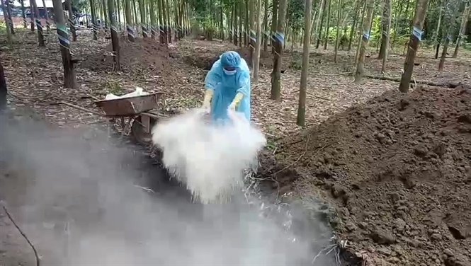 Toàn bộ số heo được chôn lấp và xử lý tiêu độc, khử trùng theo quy định |