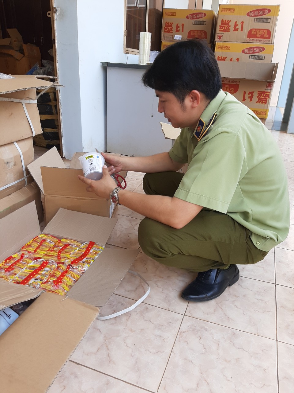 Kết quả khám, Đoàn kiểm tra phát hiện trong thùng xe chở 1.404 sản phẩm hàng hóa các loại không rõ nguồn gốc xuất xứ, hàng nhập lậu và vi phạm nhãn hàng hóa. Tổng trị giá hàng hóa vi phạm là 63.182.000 đồng. Trong đó, có 30 bịch rong biển hiệu YaKi Sushi Nori, 24 gói gia vị cay hiệu Lobo, 1.150 đôi dép Lào do nước ngoài sản xuất, không có hóa đơn, chứng từ; 80 kg xí muội không có hóa đơn, chứng từ, không rõ nguồn gốc xuất xứ;
