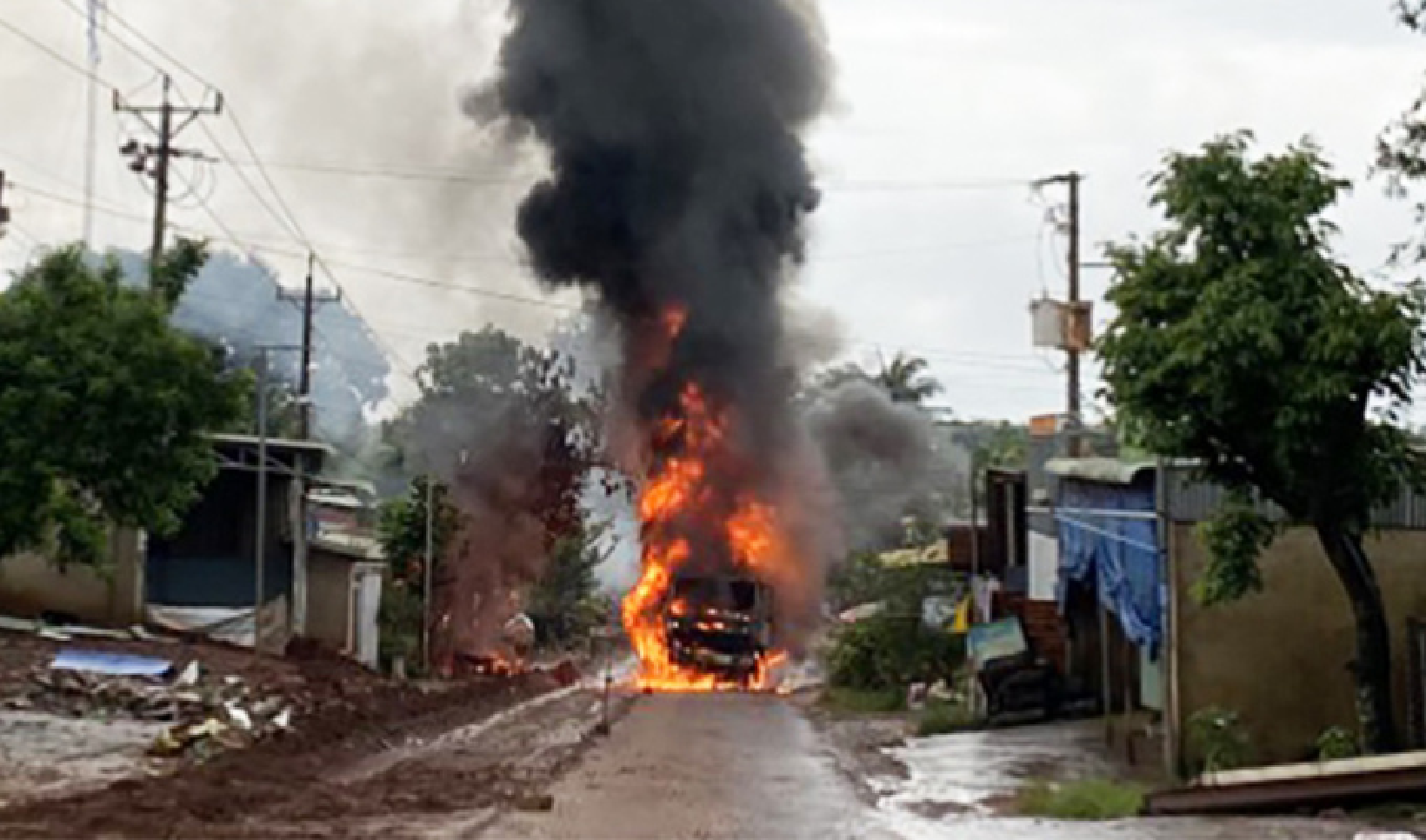 Vụ cháy quá lớn lan sang một chiếc xe tải.