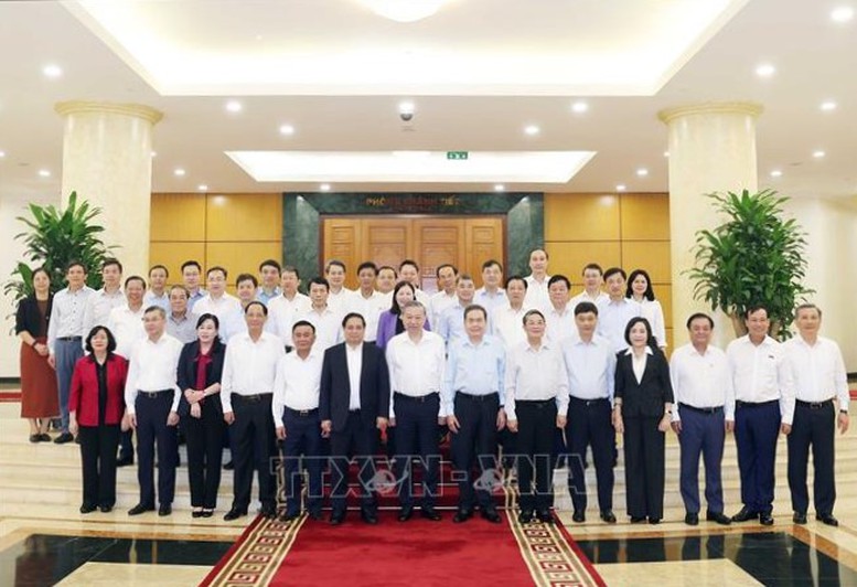 Các đại biểu dự buổi làm việc giữa Bộ Chính trị và Ban Thường vụ Đảng ủy Quốc hội - Ảnh: TTXVN