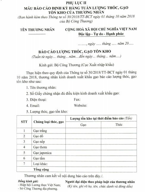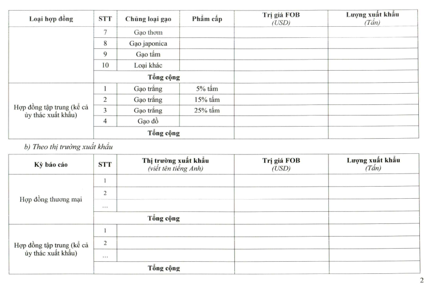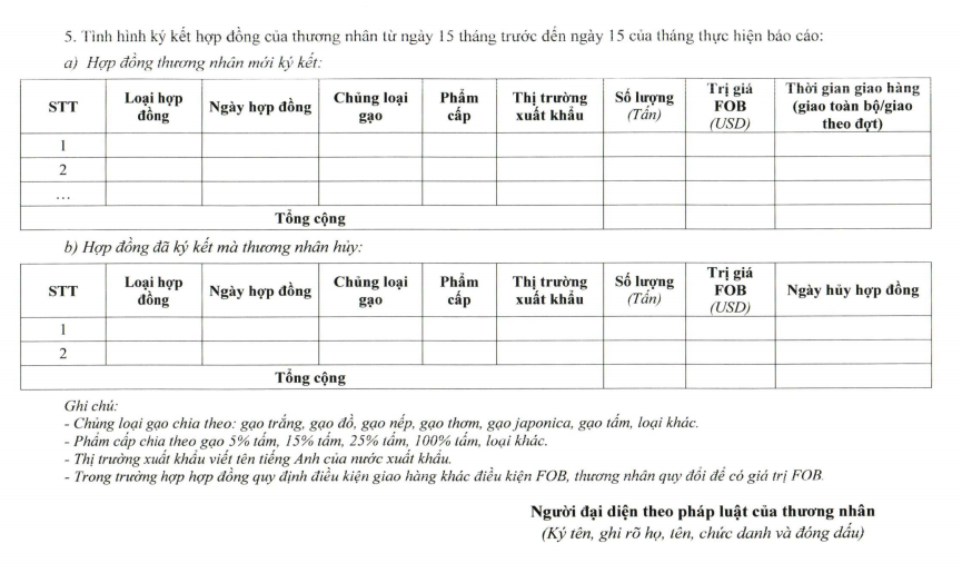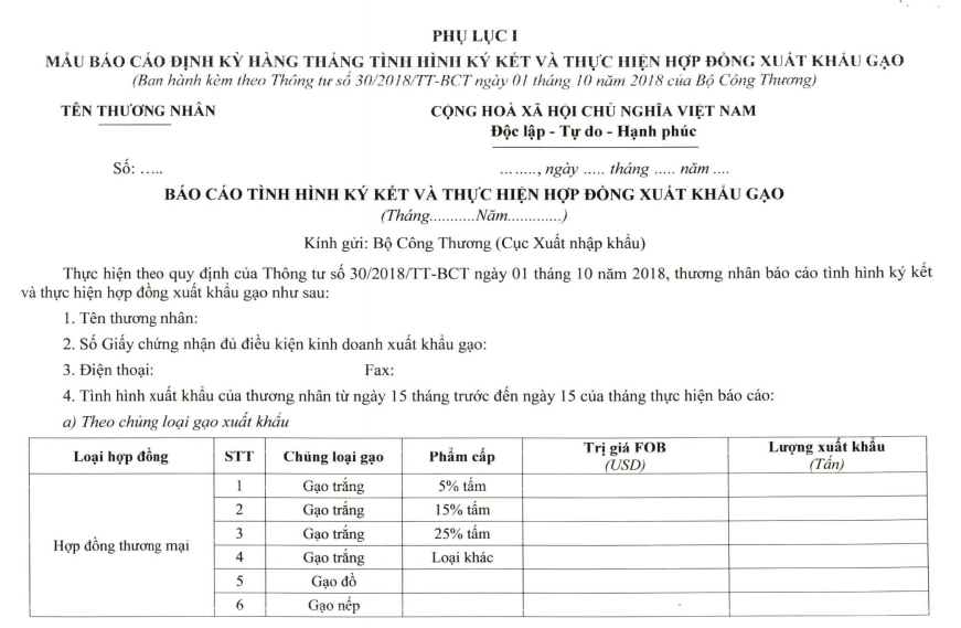 Mẫu báo cáo hợp đồng xuất khẩu gạo.