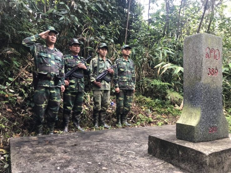 Lực lượng tuần tra Đồn Biên phòng Mỹ Lý chào, kiểm tra cột mốc số 389 biên giới Việt Nam - Lào