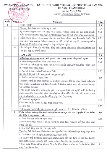 Đáp án đề thi môn Ngữ Văn THPT Quốc gia năm 2020.