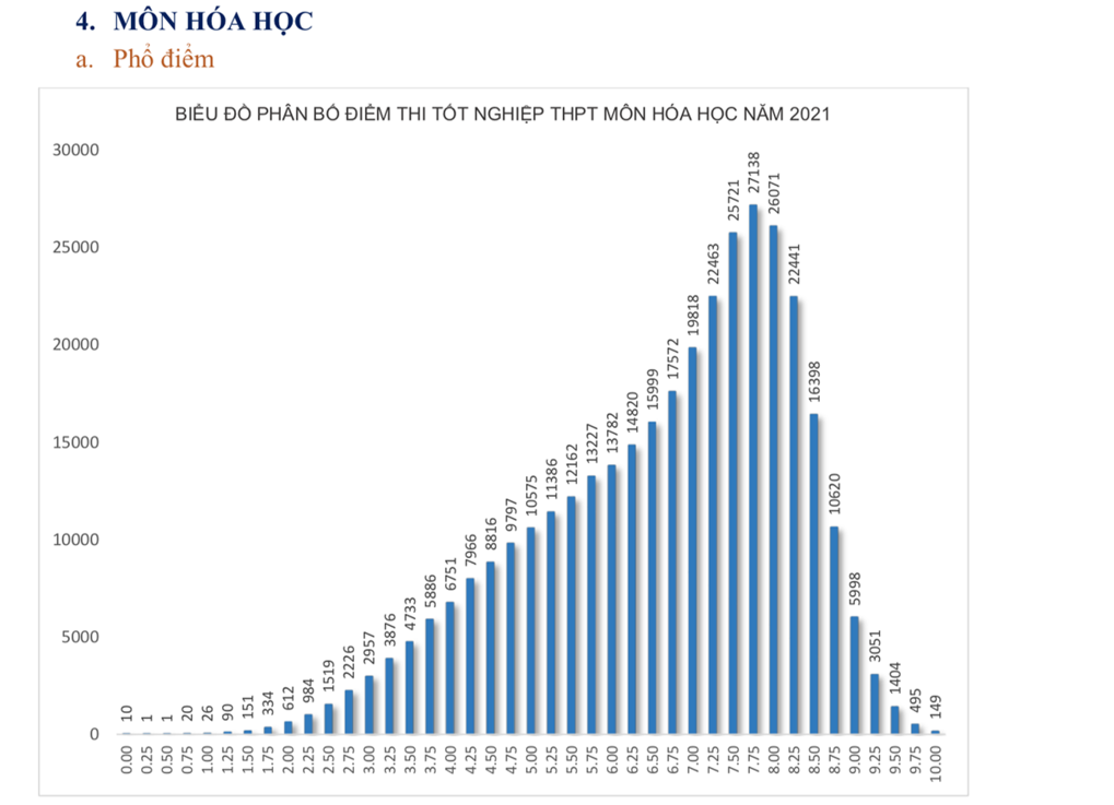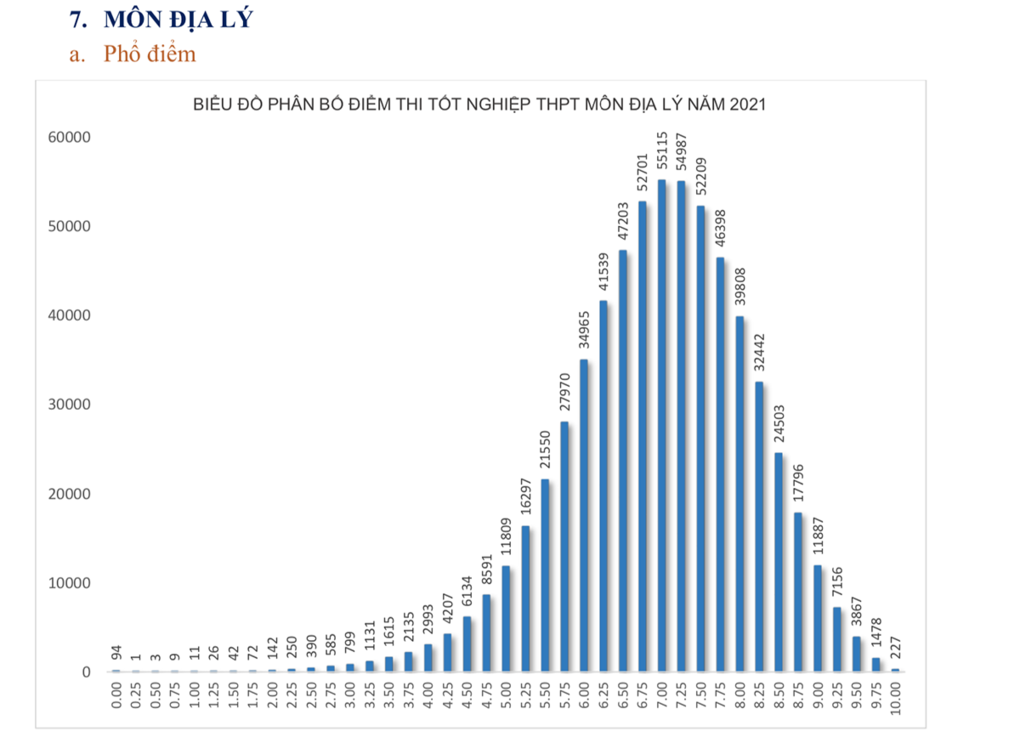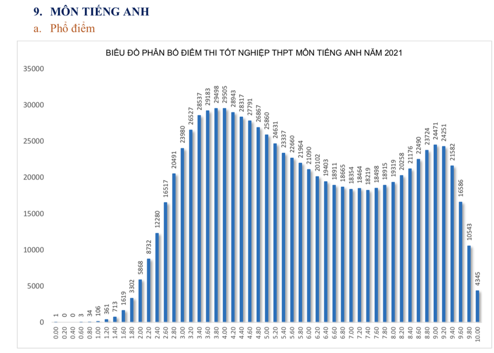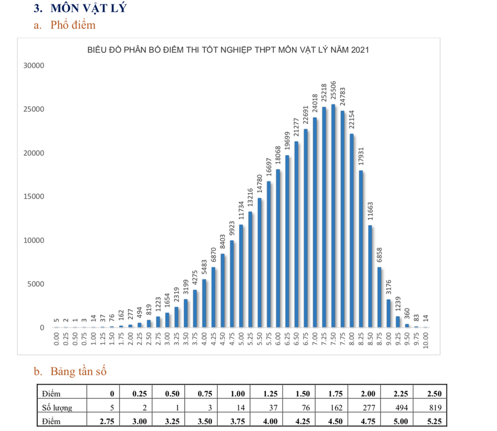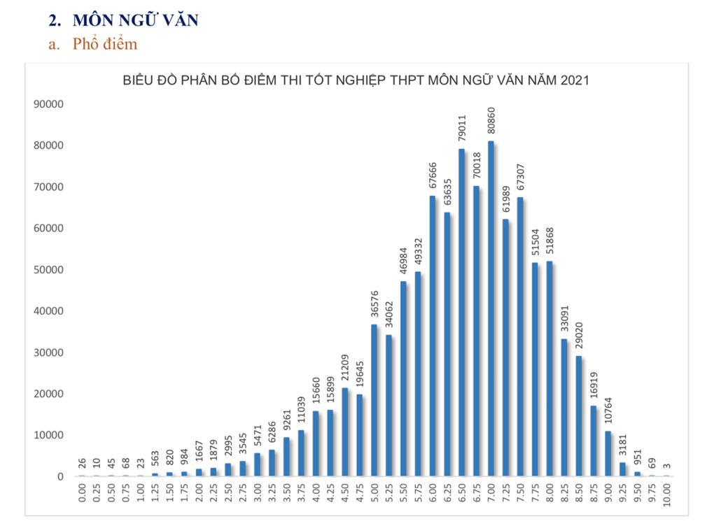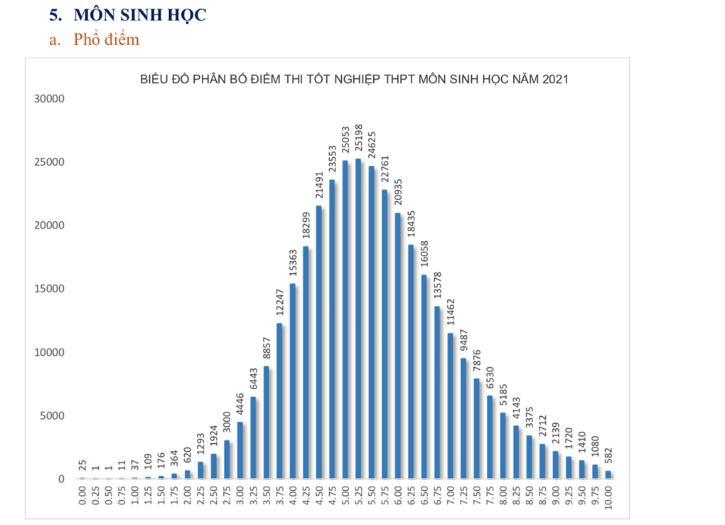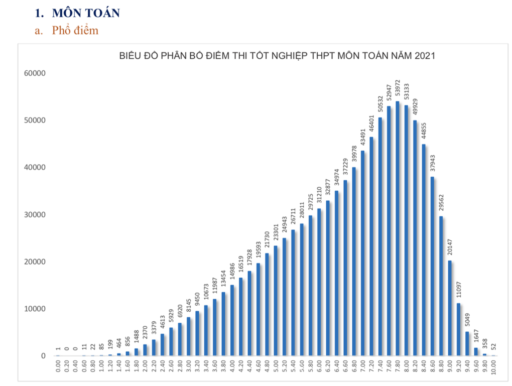 Phổ điểm cụ thể các môn thi tốt nghiệp THPT năm 2021 đợt 1 như sau: