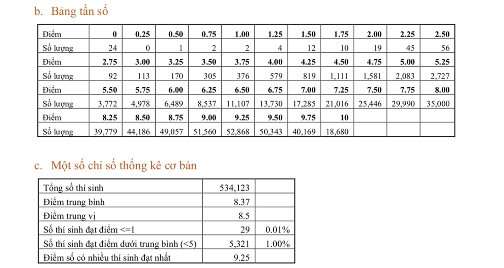 Sáng 26/7, Bộ Giáo dục và Đào tạo công bố phổ điểm 9 môn thi tốt nghiệp THPT đợt 1 của gần 981.800 thí sinh. Thí sinh căn cứ vào phổ điểm để biết mình ở vị trí nào trong tương quan với các bạn, xem điểm chuẩn các năm trước và tình hình tài chính của gia đình để cân nhắc lựa chọn trường đại học phù hợp.