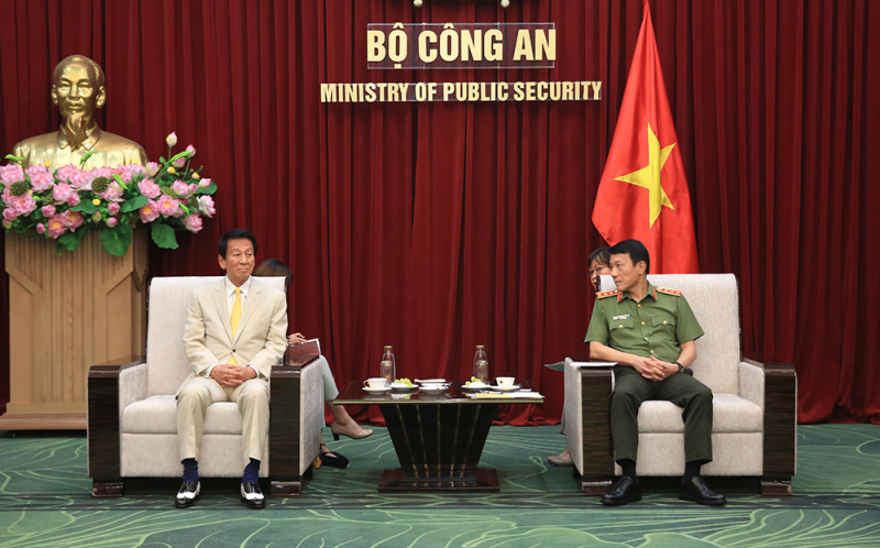 Chiều 5/8, tại Thủ đô Hà Nội, Thượng tướng Lương Tam Quang, Ủy viên Trung ương Đảng, Bộ trưởng Bộ Công an đã tiếp nguyên Đại sứ đặc biệt Việt Nam - Nhật Bản Sugi Ryotaro.