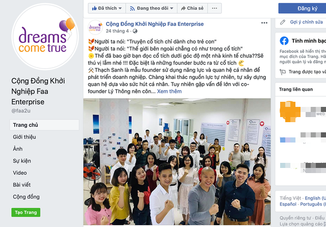 Cộng đồng khởi nghiệp FAA Enterprise do Nguyễn Thanh Phong (SN 1983, quê Phú Thọ) lập ra từ hơn 2 năm nay, hoạt động chính tại Hà Nội và có 1 chi nhánh rất mạnh ở Thanh Hóa tự sáng chế ra và bán loại sản phẩm Xương Khớp Ông Bồng chưa được cấp phép. (Ảnh: Chụp màn hình).