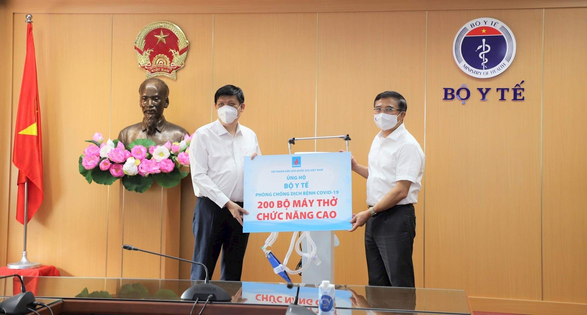 Sáng 20-8, Bộ Y tế tiếp nhận 200 máy thở chức năng cao, 3.000 bộ dây thở điều trị bệnh nhân Covid-19 nặng do Tập đoàn Dầu khí Việt Nam trao tặng. Số trang thiết bị này được Bộ Y tế chuyển vào các Trung tâm Hồi sức tích cực tại TP HCM.