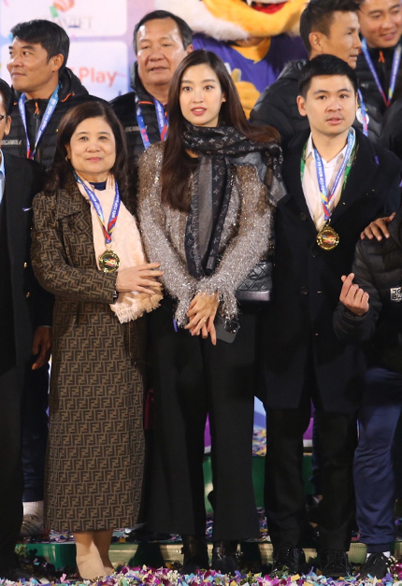Hay khi chung khung hình cùng con dâu là Hoa hậu Đỗ Mỹ Linh, bà Thanh Hoa cũng rất quyền lực với chiếc áo trench coat họa tiết đình đám của nhà mốt Fendi. Thiết kế này cũng có giá không hề rẻ từ 100 - 150 triệu đồng.