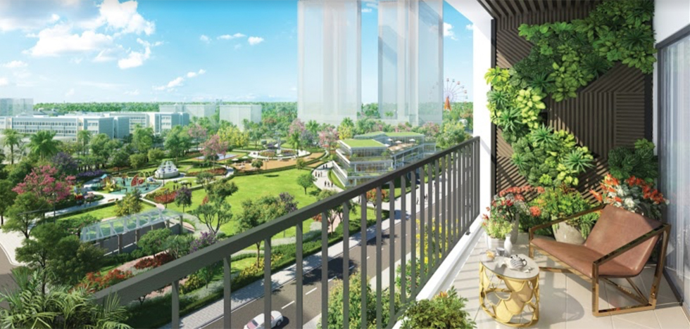 Ngoài ra, phần ban công được thiết kế khá rộng, sẽ là góc nhỏ tuyệt vời cho gia đình bạn trồng hoa, thưởng trà, chơi cờ, đọc sách… Từ đây, các cư dân có thể thư giãn phóng tầm mắt ra ngắm nhìn thành phố cũng như thảm thực vật xanh mát quanh dự án sau mỗi ngày làm việc vất vả.