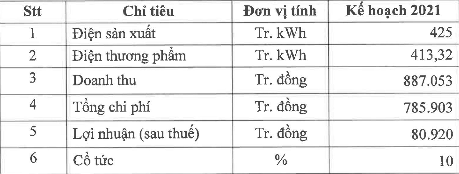 Cụ thể, BTP đặt doanh thu 2021 hơn 887 tỷ đồng (tăng 8%) và lãi sau thuế đạt gần 81 tỷ đồng (tăng nhẹ so với thực hiện năm 2020). Bên cạnh đó, BTP cũng đặt mục tiêu điện sản xuất đạt 425 triệu kWh và điện thương phẩm đạt hơn 413 triệu kWh.