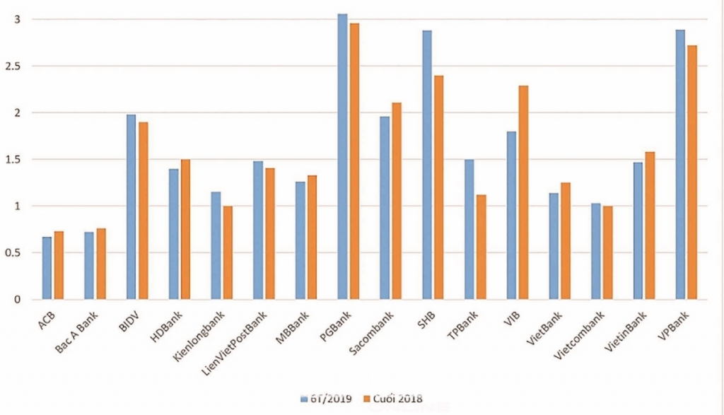 Ngoài ra, một số ngân hàng khác cũng có xu hướng “đi lùi” tỷ lệ nợ xấu trên tổng dư nợ trong 6 tháng đầu năm là: LienVietPostBank tăng từ 1,41% lên 1,48%; Kienlongbank từ mức dưới 1% cũng đã tăng lên 1,15%; VPBank từ mức 2,72% lên 2,89%; BIDV từ mức 1,9% hồi đầu năm leo lên 1,98%; PGBank tăng từ 2,96% lên 3,06%...