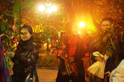 Tận dụng phong tục đầu xuân hái lộc, nhiều người dân buôn những cành lộc đẹp về bán trong giao thừa