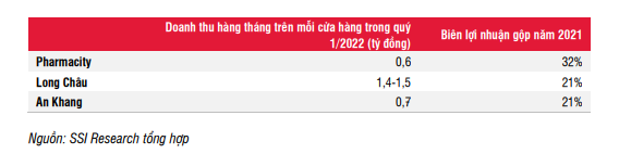 SSI tin rằng nhu cầu về vitamin và thực phẩm chức năng có thể đã đạt đỉnh vào quý 4/2021 và quý 1/2022, khi số ca nhiễm COVID-19 đạt đỉnh. Các chuỗi nhà thuốc cũng đã đa dạng hóa danh mục sản phẩm bao gồm các mặt hàng FMCG khác, chẳng hạn như sản phẩm chăm sóc cá nhân, dược mỹ phẩm, bánh kẹo và đồ uống.