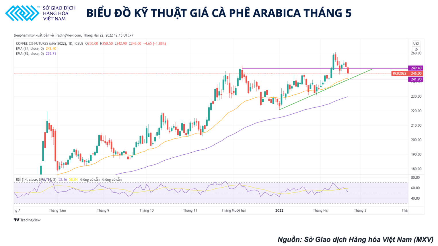 Biểu đồ kỹ thuật giá cà phê Arabica tháng 5 ( Nguồn: Sở giao dịch Hàng hóa Việt Nam)