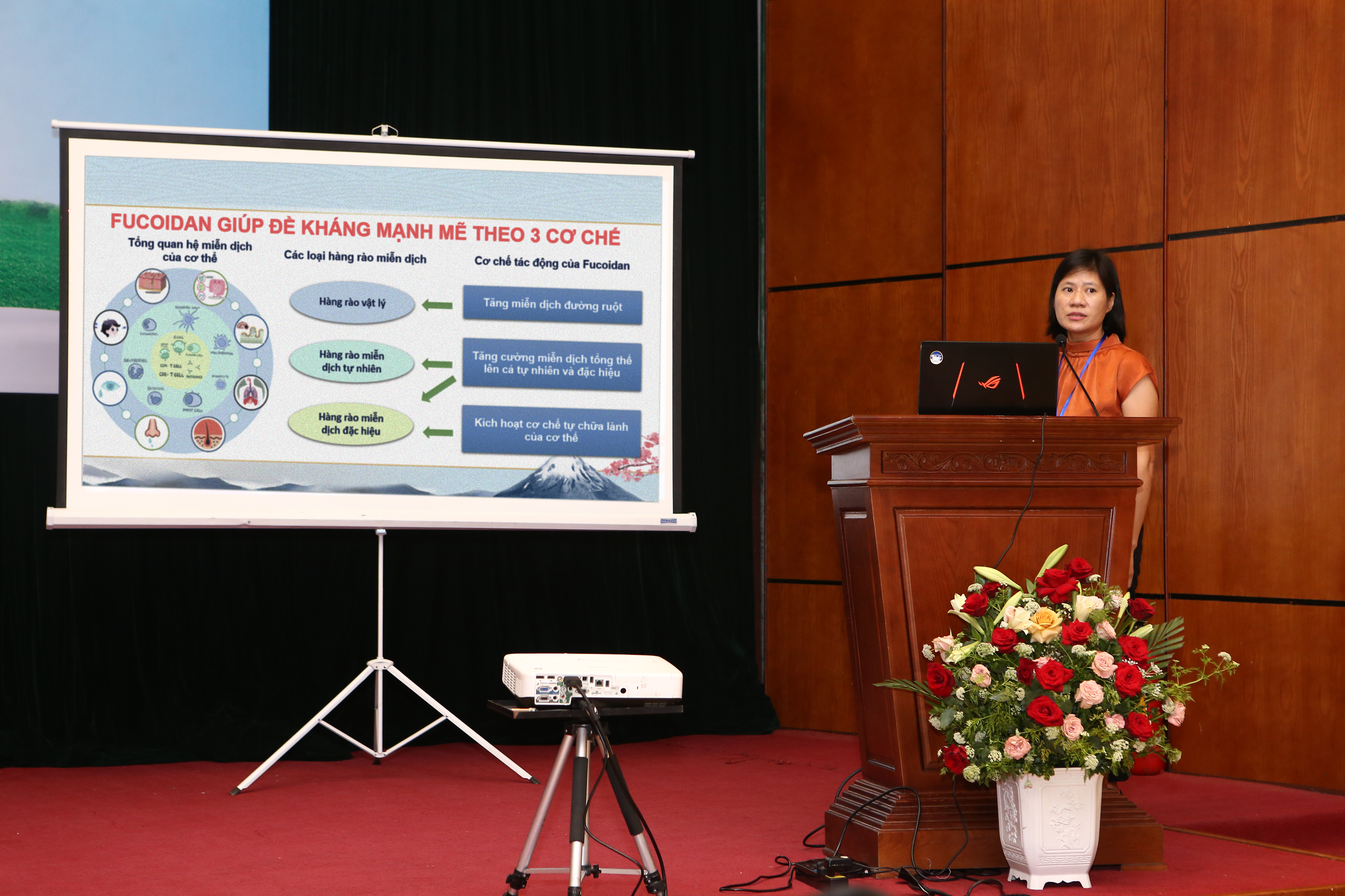 TS.BS. Vũ Thị Thanh - Trưởng phòng dinh dưỡng điều trị - Trung tâm dinh dưỡng lâm sàng - BV Bạch Mai chia sẻ về lợi ích của Fucoidan từ tảo nâu, giúp cải thiện sức khỏe.