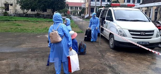 Ngành y tế Quảng Bình triển khai các biện pháp phòng dịch, đưa trường hợp F1 đi cách ly y tế tập trung và lấy mẫu xét nghiệm theo quy định. (Ảnh: TTXVN phát).