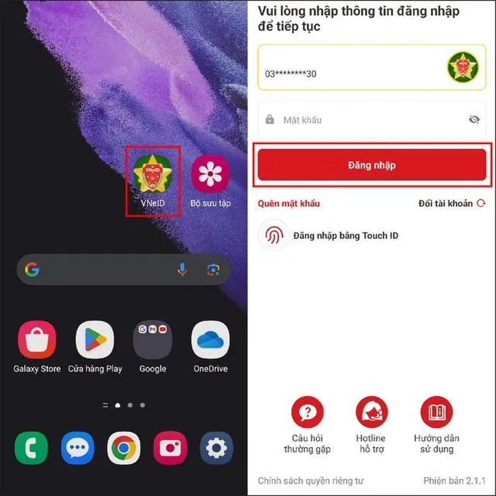 Bước 1: Mở ứng dụng VNeID trên điện thoại. Đăng nhập vào tài khoản của mình để vào ứng dụng.