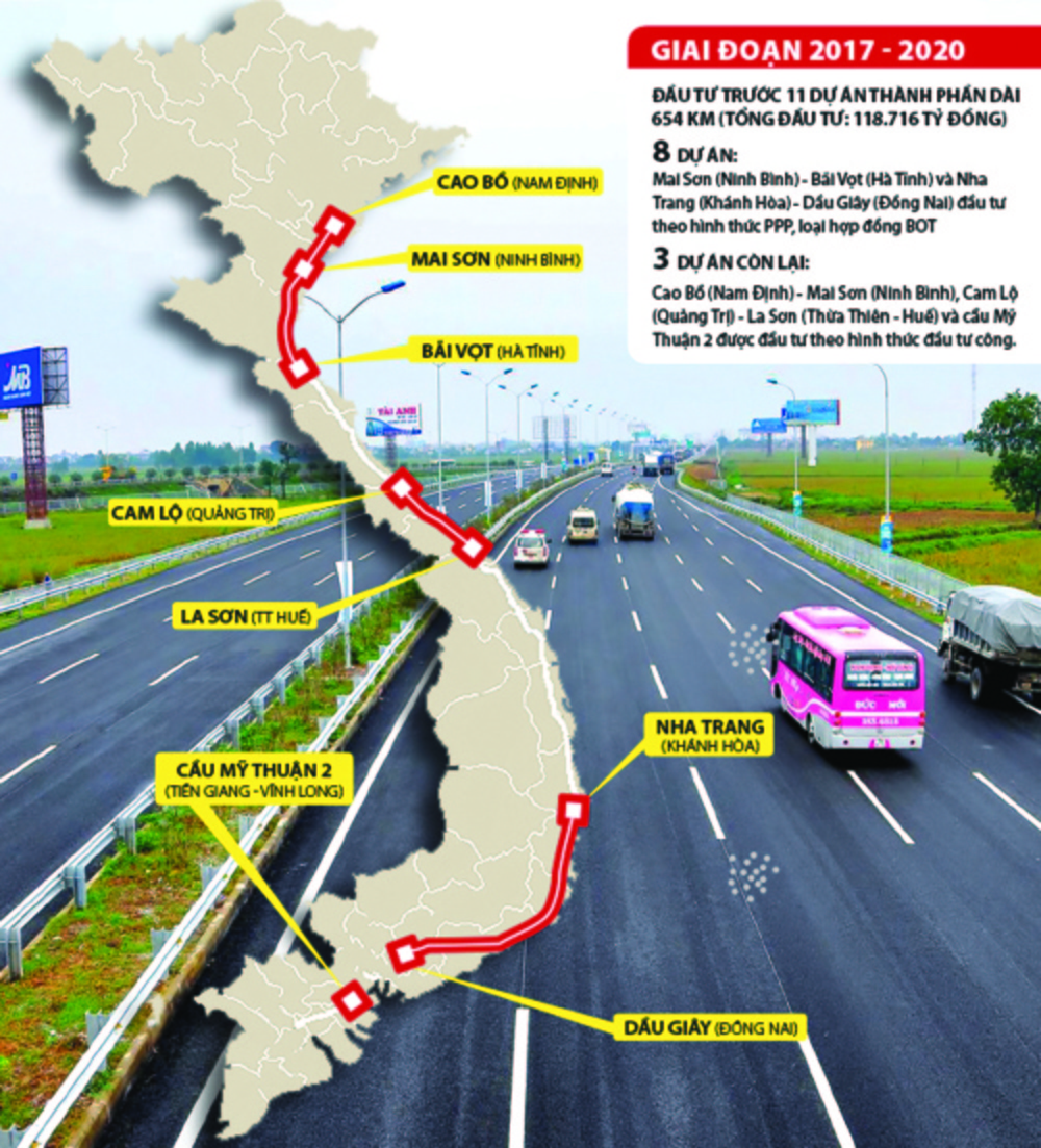 Các dự án thành phần cao tốc Bắc - Nam phía Đông. Đồ họa: Nguyễn Tường