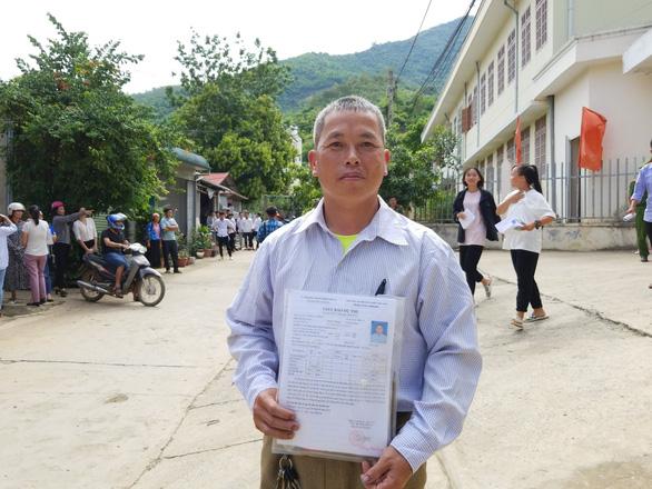 Vừ A Nghĩa - thí sinh 42 tuổi - ra khỏi phòng thi với nụ cười tươi rói. Anh A Nghĩa nhận định đề thi môn văn vừa sức đối với anh, anh tự tin ít nhất được 5 điểm.