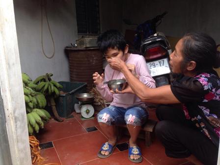 Bà nội giúp cháu Ngọc Anh ăn trưa