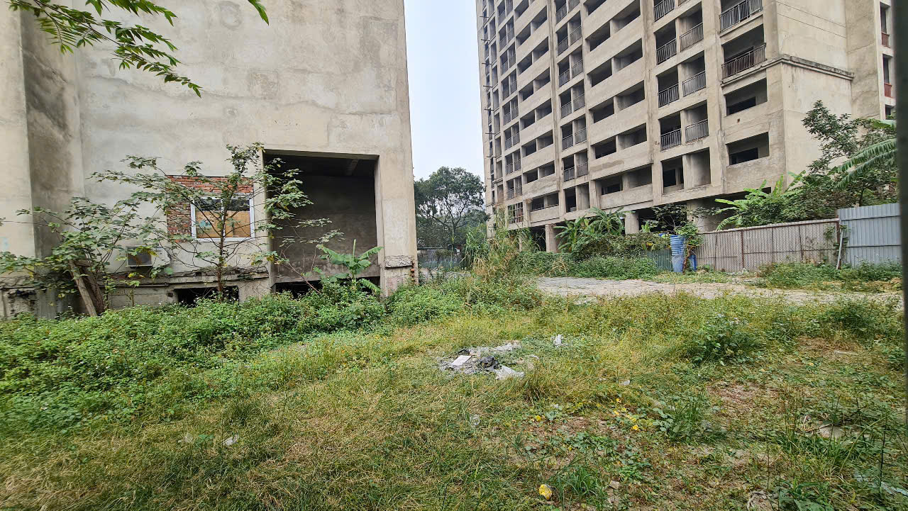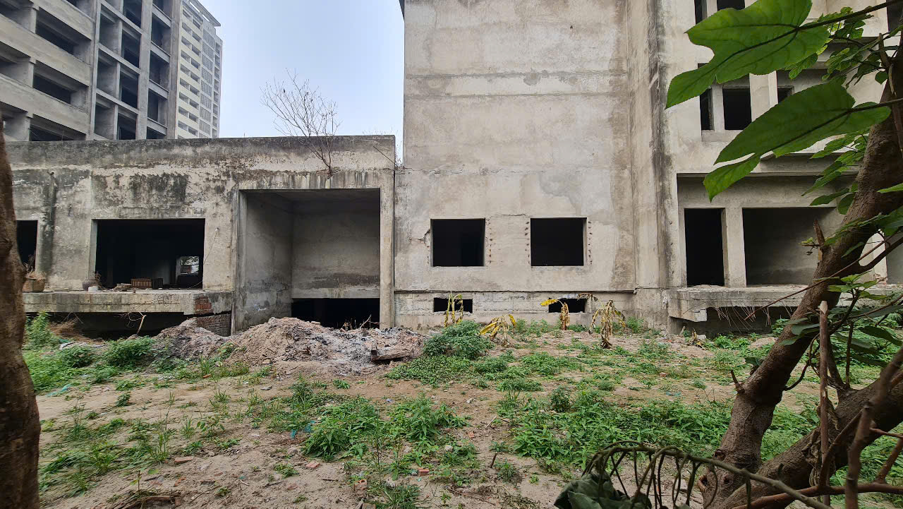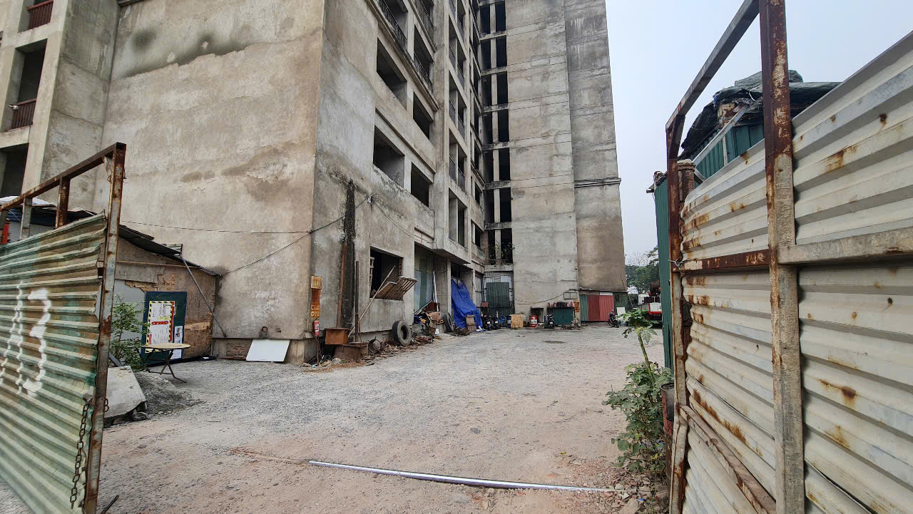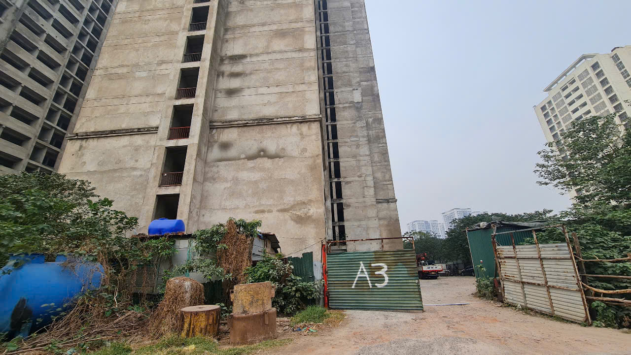 Các toà nhà đã xây xong phần thô từ lâu nhưng chưa được hoàn thiện, vẫn nằm phơi nắng phơi mưa gây lãng phí suốt cả thời gian dài (Ảnh: N.Vũ)