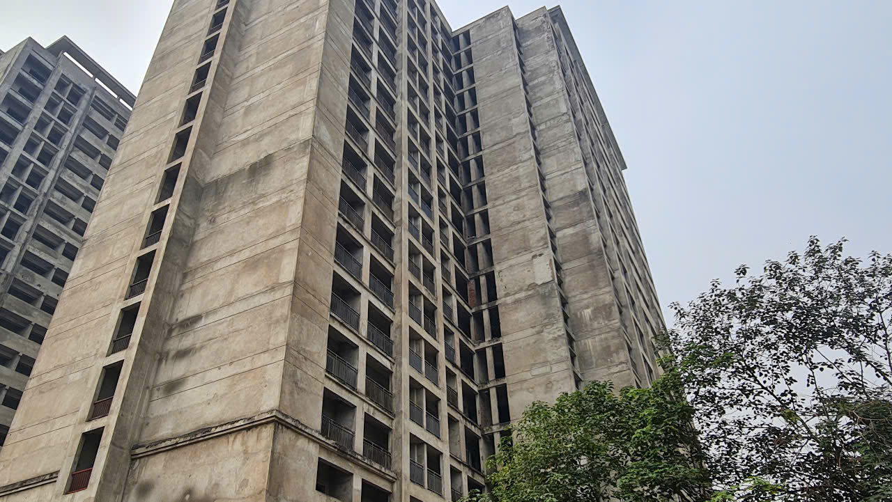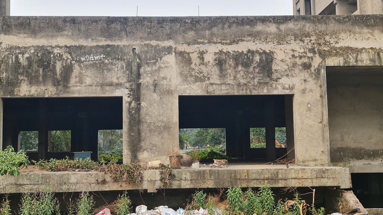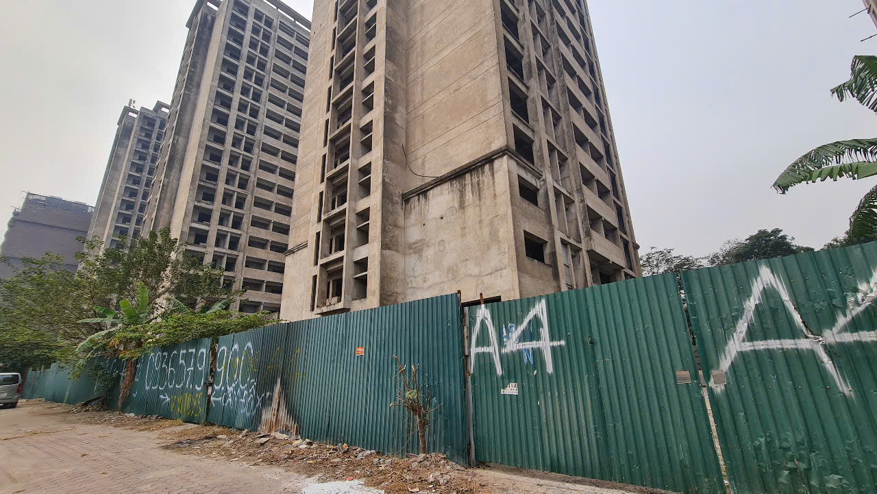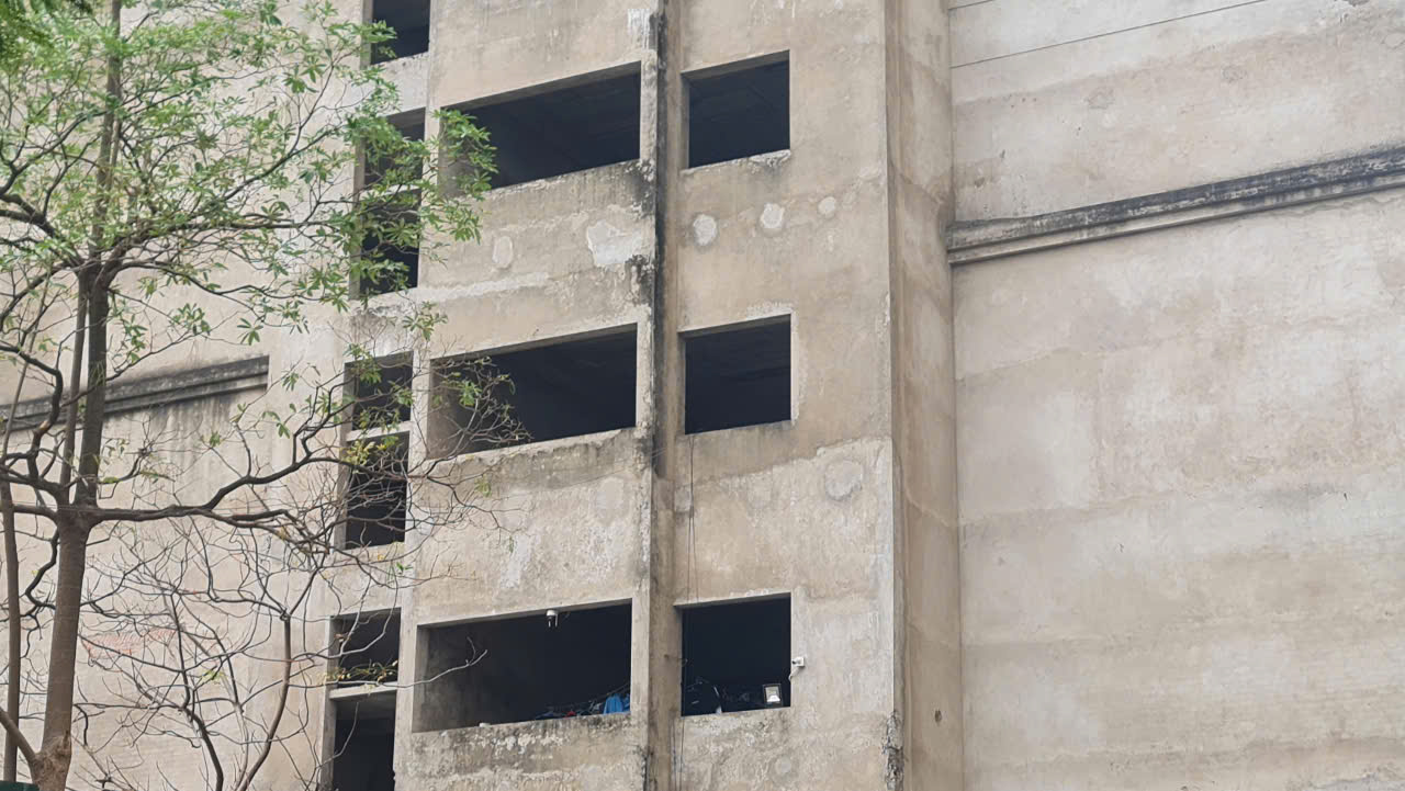 Các toà nhà đã xây xong phần thô từ lâu nhưng chưa được hoàn thiện, vẫn nằm phơi nắng phơi mưa gây lãng phí suốt cả thời gian dài (Ảnh: N.Vũ)