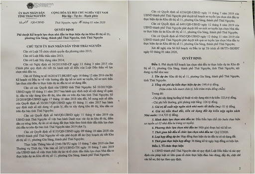 Quyết định phê duyệt kế hoạch lựa chọn nhà đầu tư thực hiện dự án KĐT số 11 phường Gia Sàng, TP Thái Nguyên.