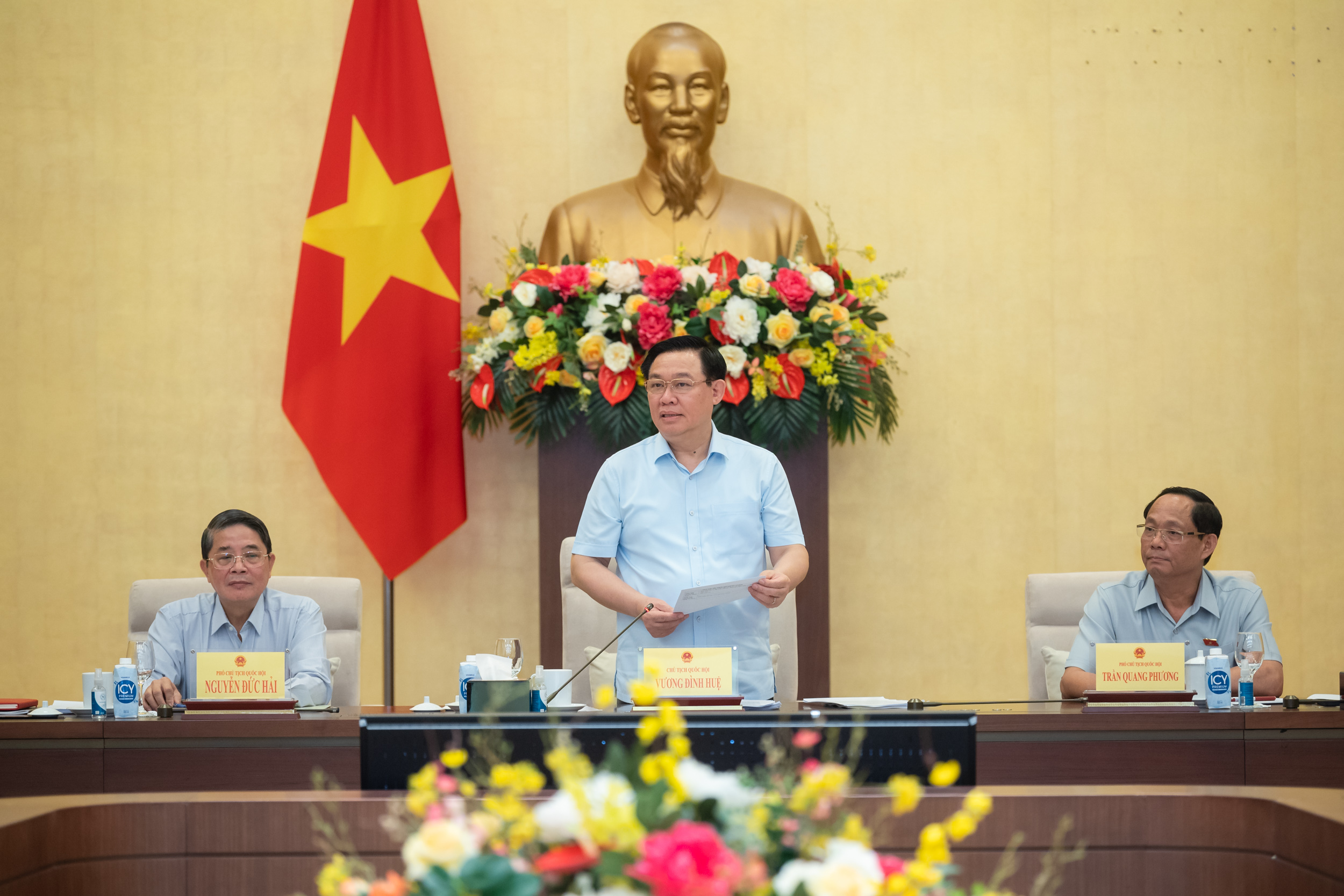 Chủ tịch Quốc hội Vương Đình Huệ phát biểu kết thúc buổi làm việc. (Ảnh Quochoi.vn)